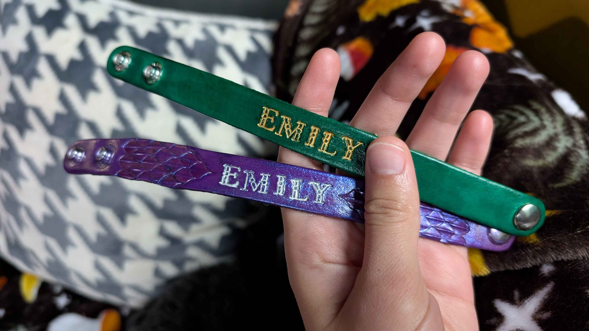 Show some mythical flair with a customized bracelet, featuring multiple dragonscale and lettering options! All Bracelets come pre-buttoned to 7-8 inches.