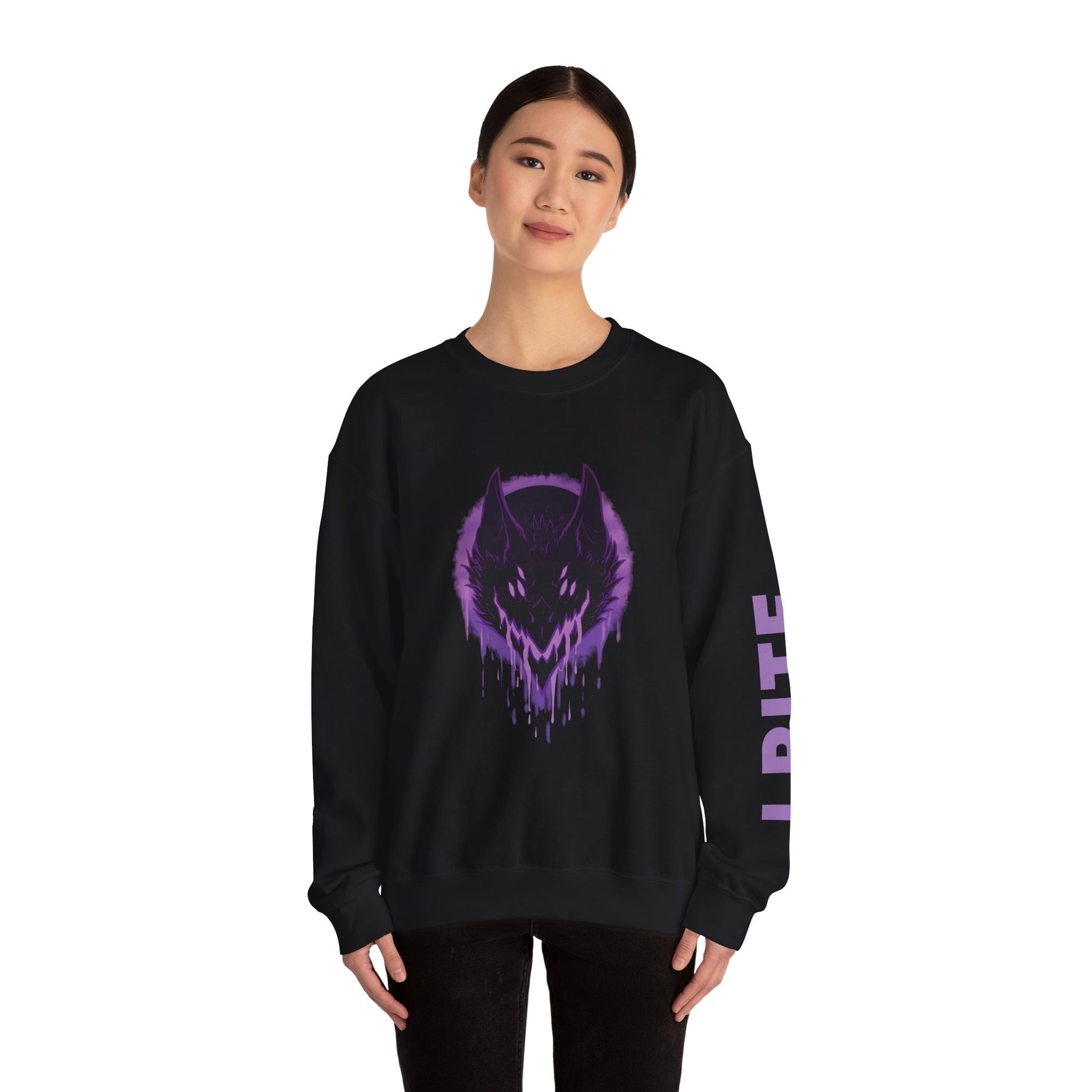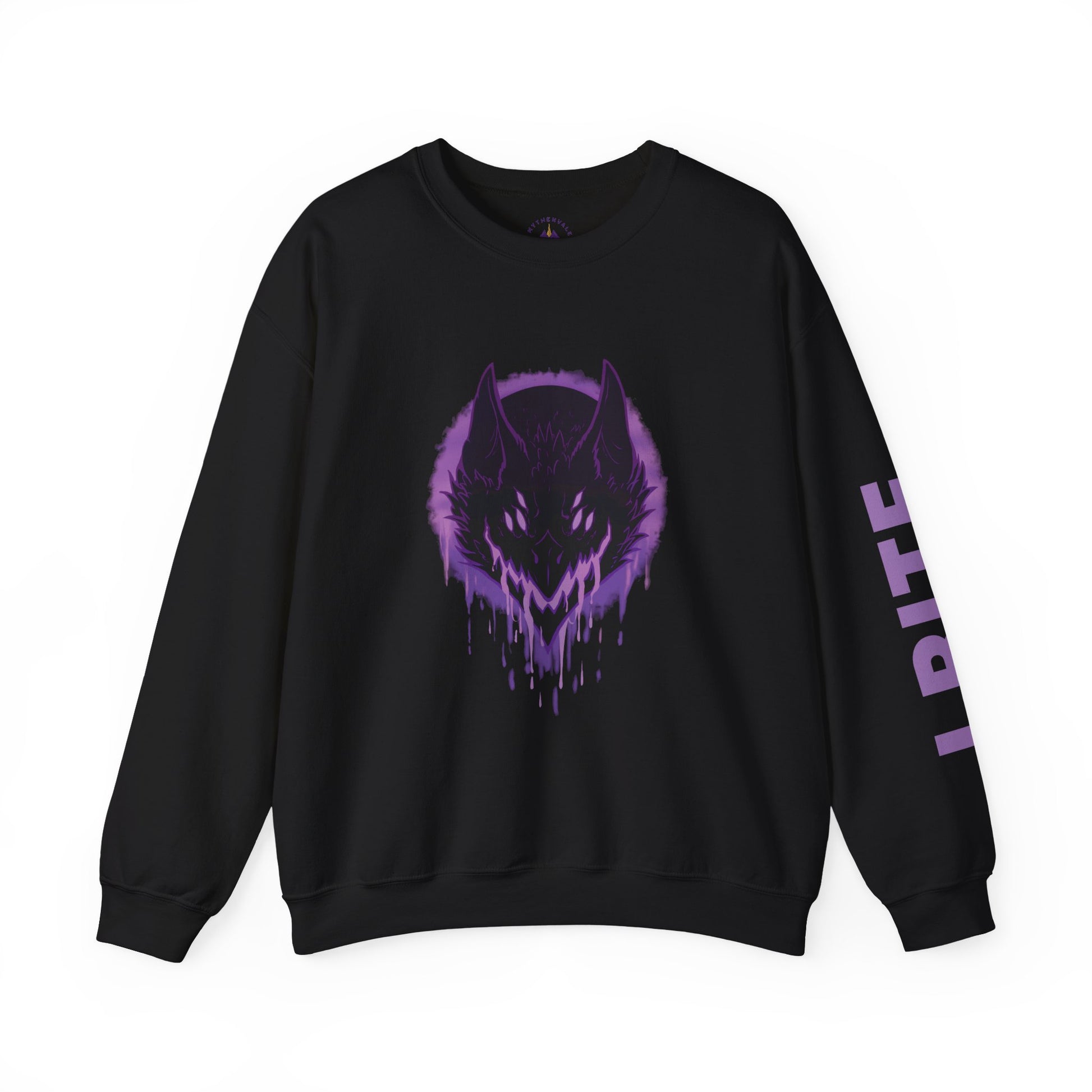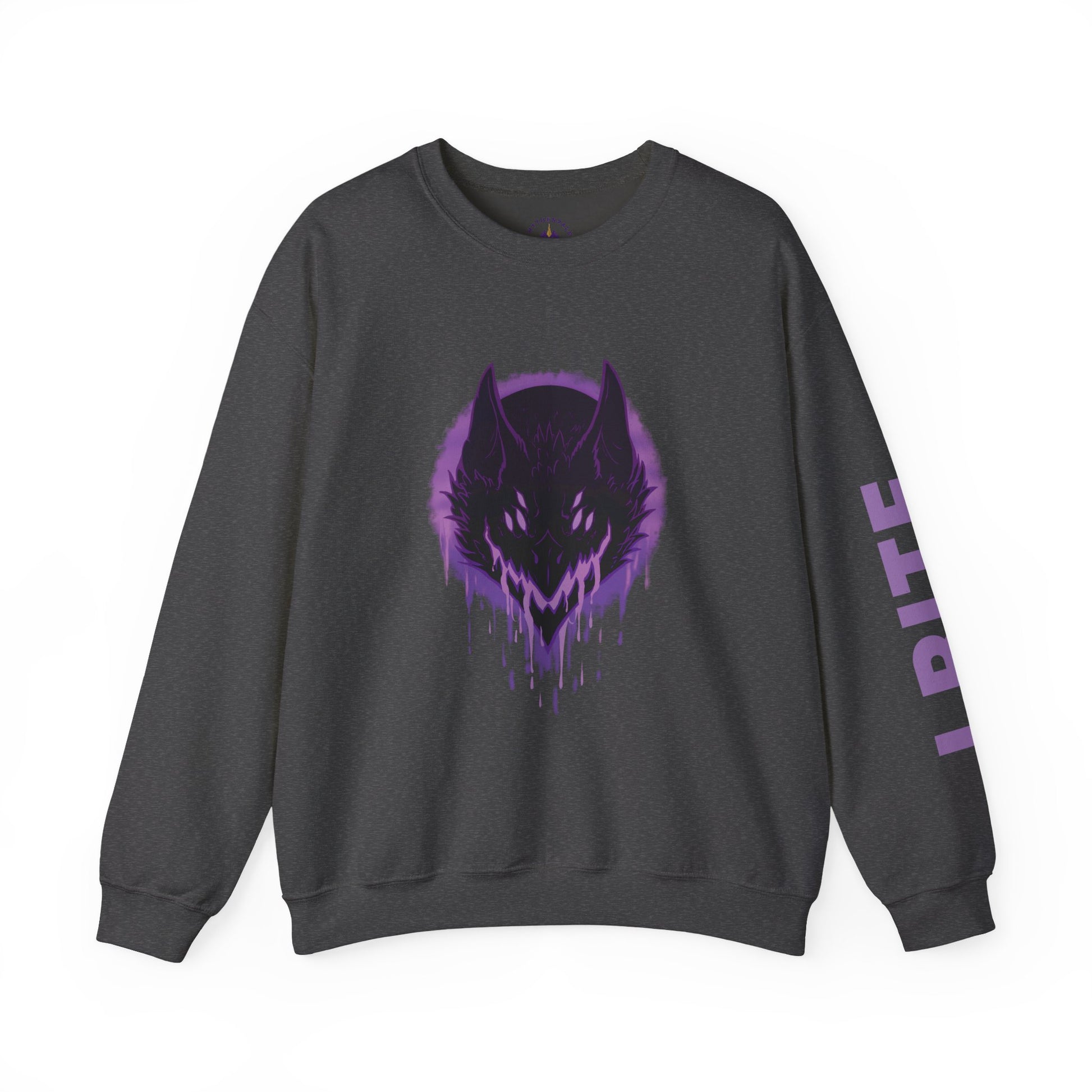 Let the inner Shadow Fiend show with Saika's Moon on this comfy-cozy Crewneck Sweatshirt! A brilliant purple design is paired with an effective warning against all would-be nuisances.